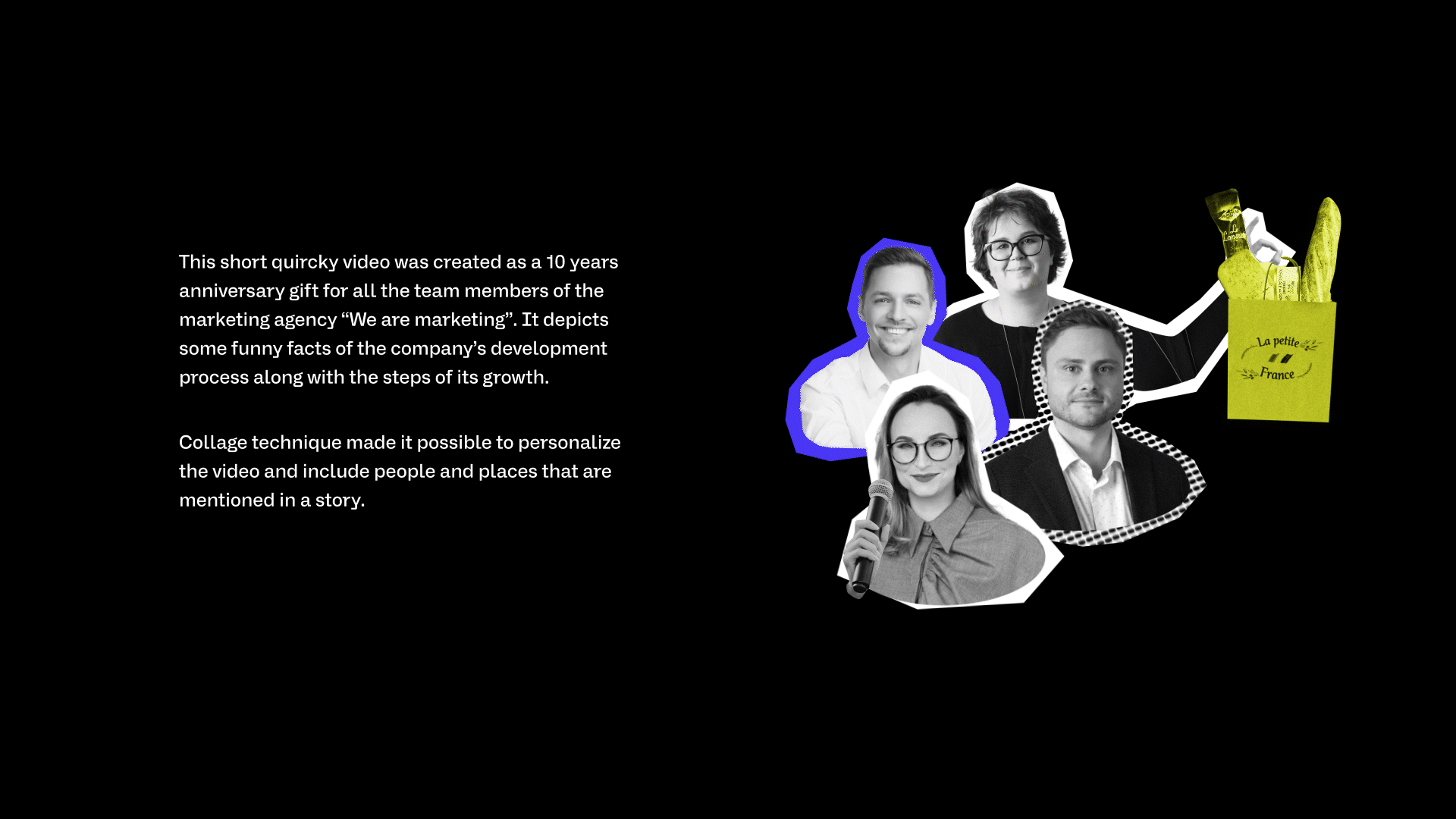 This funny and dynamic animation depicts the story of WAM - marketing agency based in Lithuania. Collage technique was chosen in order to personalize the story. I created this animation on behalf of We Are Marketing agency.